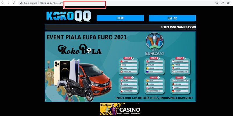 Sob domínio de “flaviobolsonaro.com“, a página da web deveria trazer informações sobre ações do parlamentar ao longo de seu mandato como senador eleito pelo Rio de Janeiro. No entanto, assim que se acessa o link, o usuário dá de cara com uma plataforma de nome “KokoQQ”.