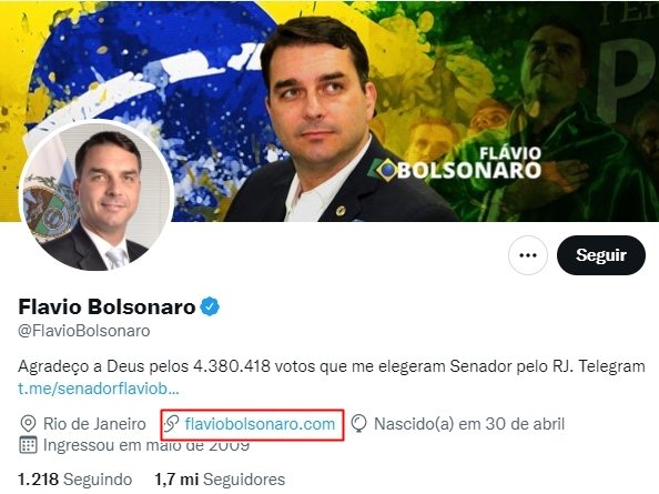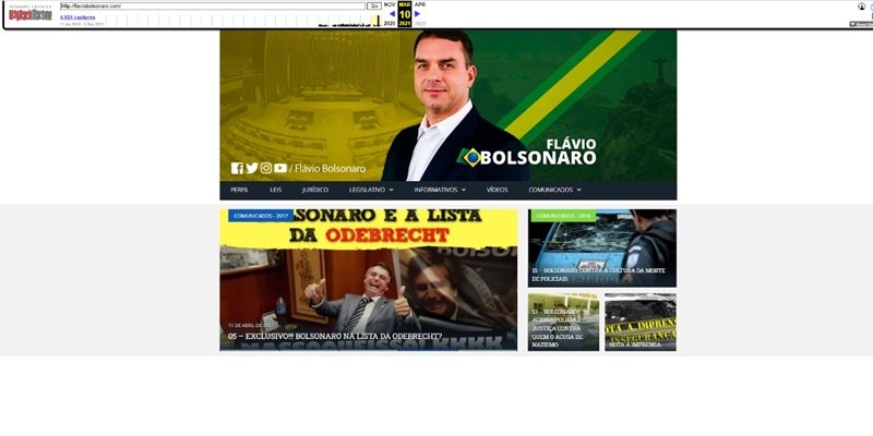 No entanto, conforme registrado pela reportagem (veja na galeria acima), o domínio “flaviobolsonaro.com” era divulgado nas redes sociais do senador como sendo o endereço oficial.