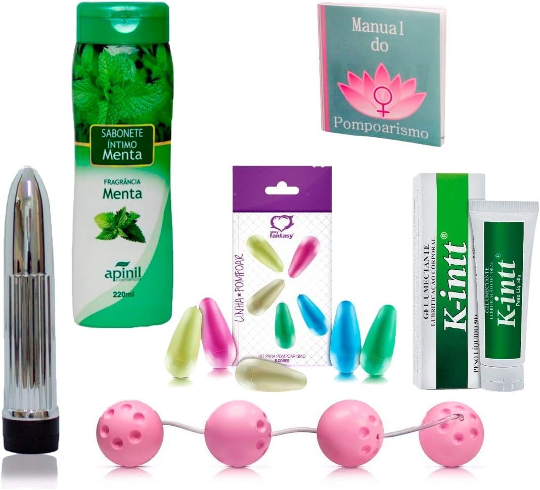 Por fim, se você levou a missão pompoarismo a sério, eis um kit completo para o início da prática. Além de um cordão com quatro esferas, este combo traz um manual, um vibrador bullet, cones de pompoarismo, lubrificante e um sabonete íntimo.