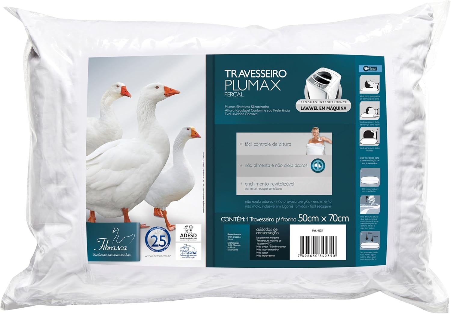 Com interior de plumas sintéticas siliconizadas, esta opção permite ser lavado na máquina sem prejuízo ao volume na hora da secagem. Revestido em percal 200 fios 100% algodão, possui um zíper lateral pelo qual o usuário pode retirar parte da espuma, caso queira fazer uma regulagem na altura do produto. Com 81% das avaliações em 5 estrelas, este produto não tem opiniões ruins feitas por usuários.